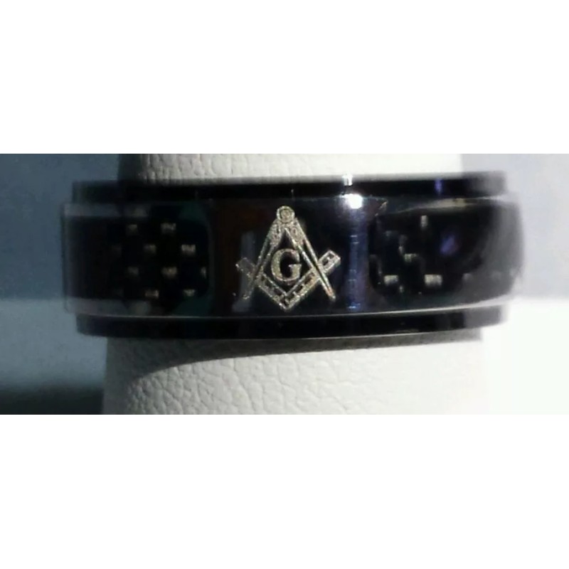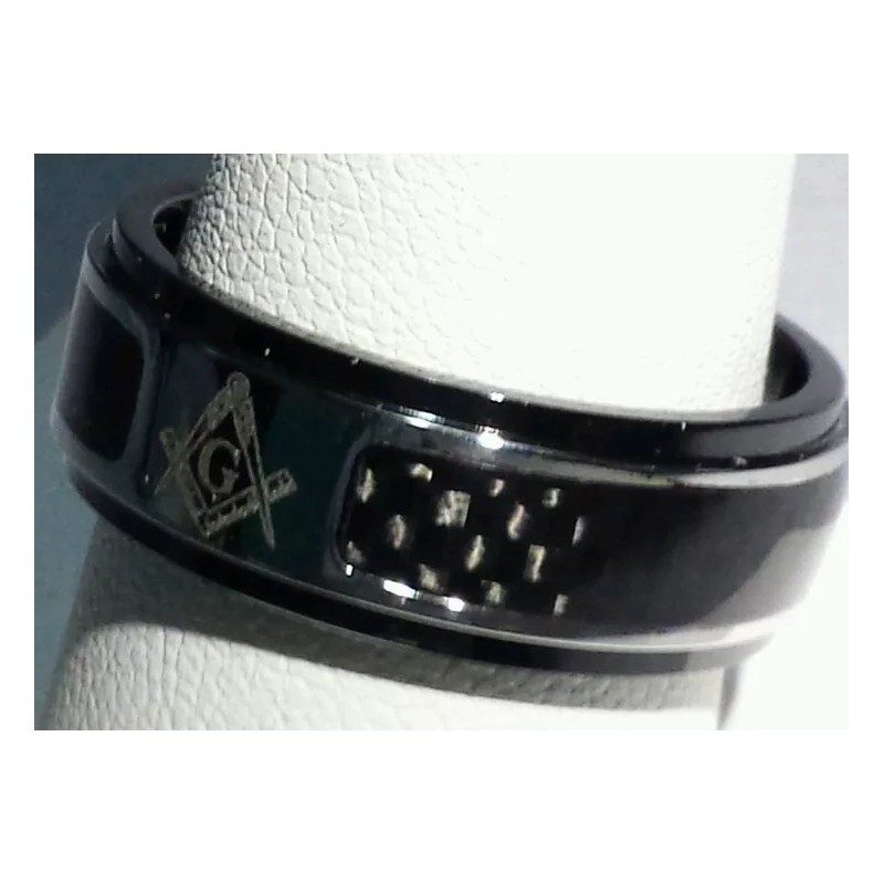 Freemason Ring with Carbon Fiber Inlay (size 10)