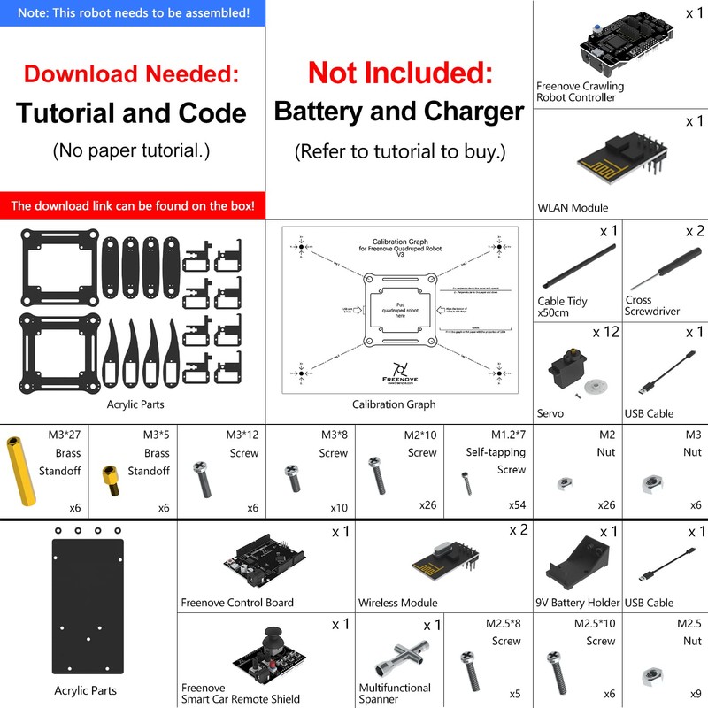 Freenove 4 Leg Walking Robot Kit with Remote Control (Arduino IDE) App Remote Control Walking High High Twist Servo STEM Project