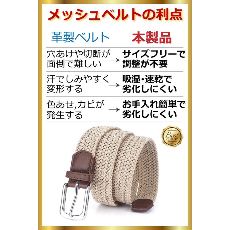 - One size fits all: This is a one-size-fits-all braided mesh belt that allows the belt hole to pass anywhere. No drilling/buckle removal/cutting adjustment; Adopts elastic stretch mesh rubber material with a high fit; The size can be adjusted to a fine size in approximately 0.2 inch (5 mm) increments. (Uses an elastic mesh belt that is resistant to water and sweat) Features a highly durable and elastic braided construction. Compared to genuine leather belts, it is sweat and water resistant and has excellent moisture absorption and quick-drying properties. Easy to clean and useful for activities such as golf and outdoor activities, and even on hot days of spring and summer
