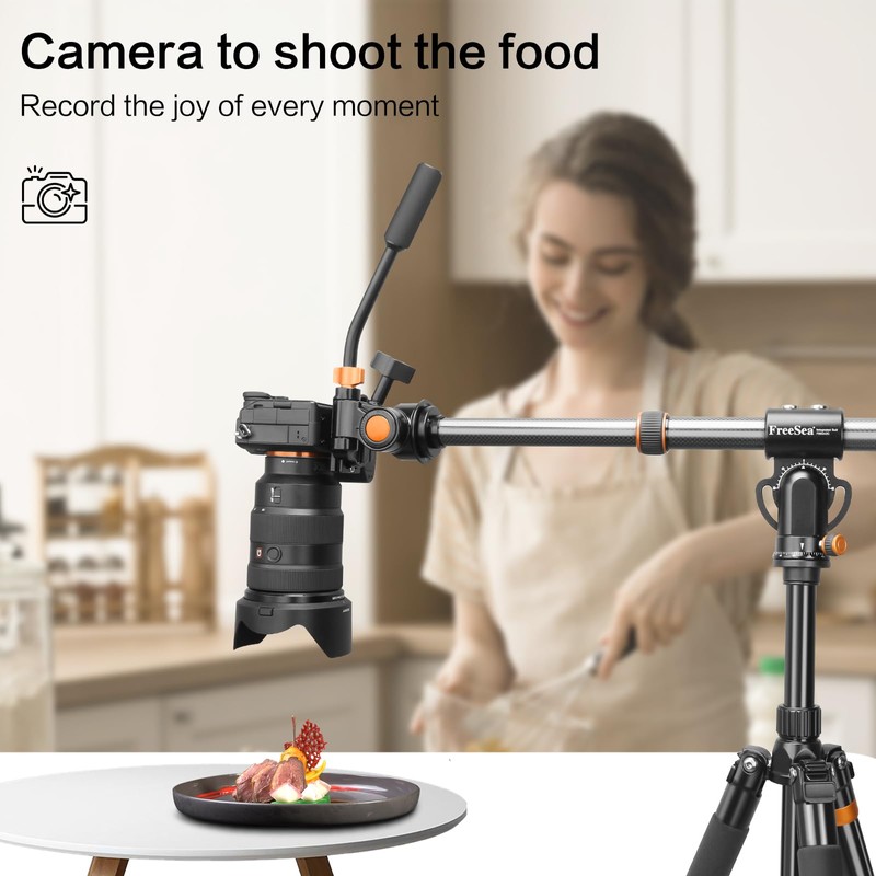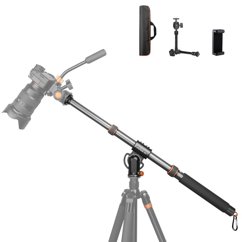 FreeSea 41"Carbon Fiber Tripod Extension arm with Retractable Extender Horizontal Center Column arm Tripod Side arm Extender 360°rotatable Swivel Base for Overhead Photography of Cameras/Mobile Phones