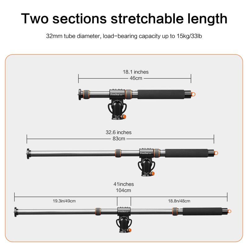 - 【TRIPOD BOOM ARMSOLID AND DURABLE】 It is made of High density Carbon Fiber alloy, 32MM diameter tube. Advantages: strong and stable, anti-corrosion, durable, the stability effect, bearing capacity up to 15KG/33LB pounds. Provide security knob and handle of using rubber twist lock and foam grip, winter use of non-freezing hands.
