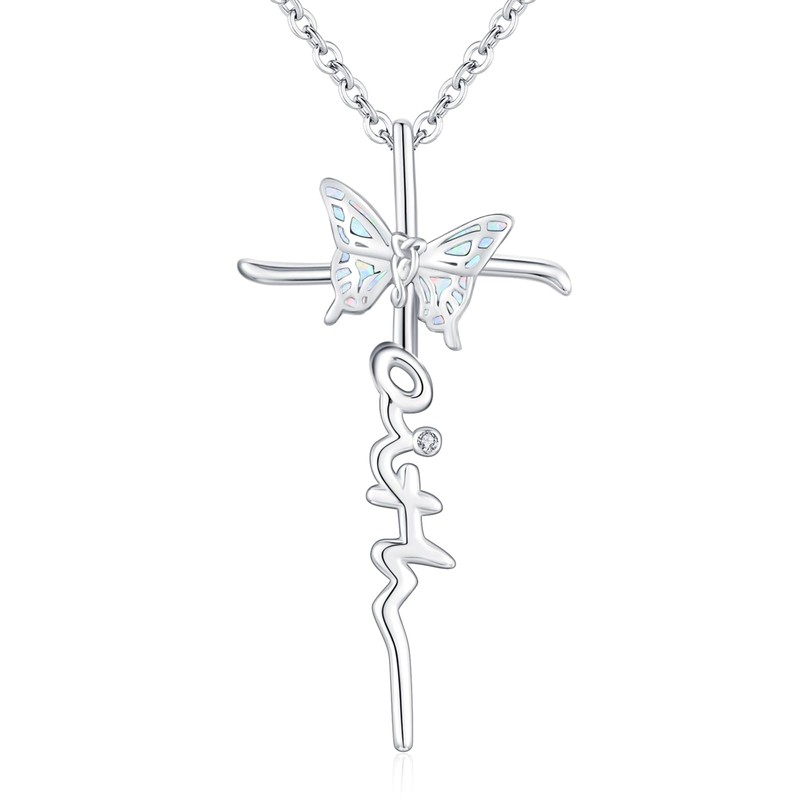 Freesloth Butterfly Faith Cross Necklace for Women 925 Sterling Silver Butterfly Pendant Cross Jewelry Valentine's Day Gifts