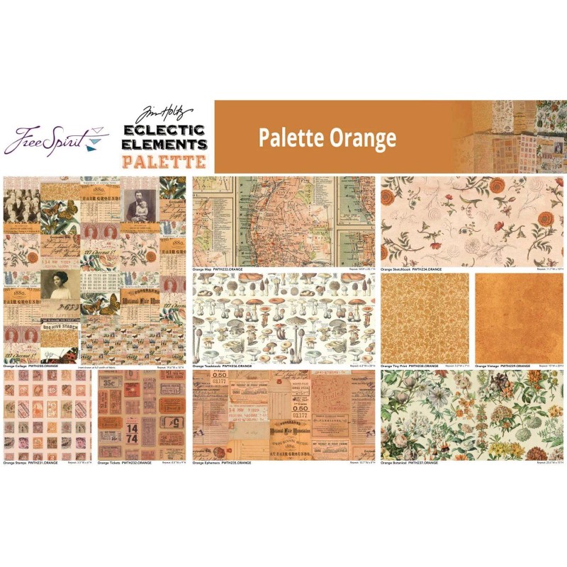 Discover vintage perfection and harmonious hues with Palette by Tim Holtz, a colorful collection of the found and forgotten. This intriguing curation of salvaged ephemera, typography, and photographs mixed with nostalgic prints, explores the imagination of coloration like never before. The ORANGE Palette is the third of twelve palettes, and we will have a new color palette every month for a year!