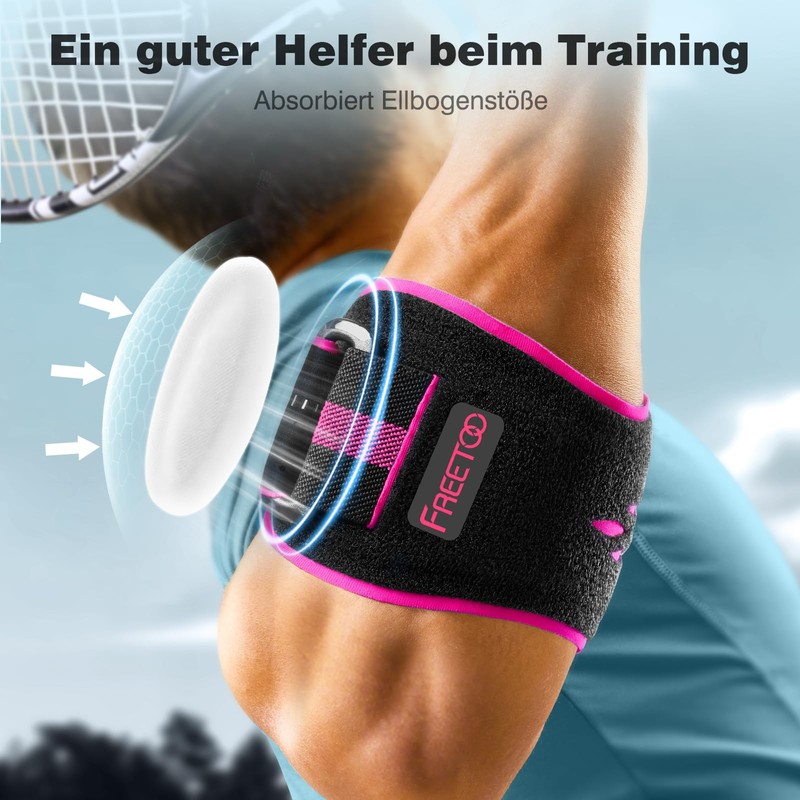 - A good helper for sports that absorbs shocks on the elbows: the tennis elbow bandage has elastic silicone pads that can absorb external shocks and protect your elbow health like a protective shield. It is an elbow brace that can effectively reduce injuries in tennis, golf, pickleball, weightlifting and bodybuilding.