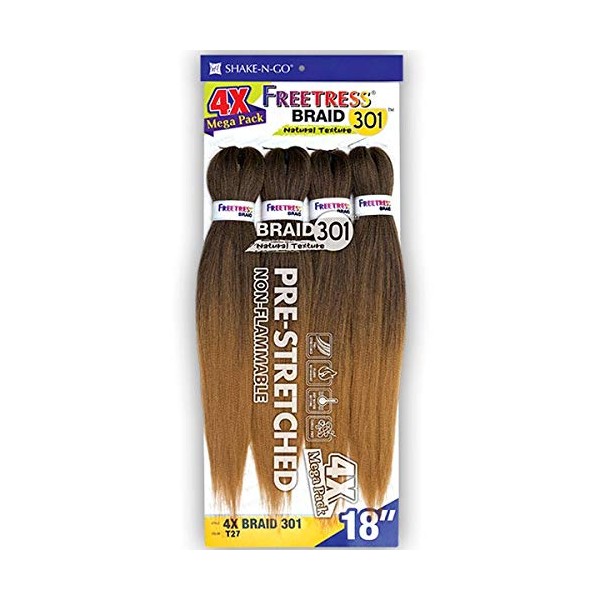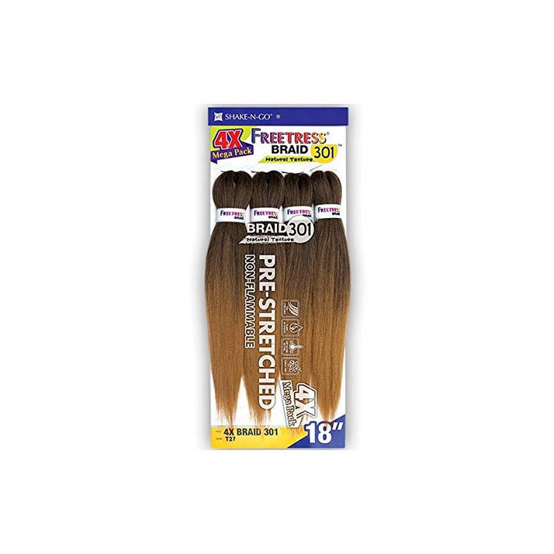 Freetress Synthetic Braid - 4X BRAID 301 18 Natural Texture 4X Mega Pack Pre- Stretched Flame Retardant Hot Water Setting Tangle Free Quick And Easy, Ready to Install. Braiding Made Simple and Easy. - Easy to Manage - Perfect for Blending - Soft and Easy to Brush - Hot Water Set - Natural Blown Out Texture - No Tangling and Hair Loss - Safe up to Two Hours - No Prep Needed