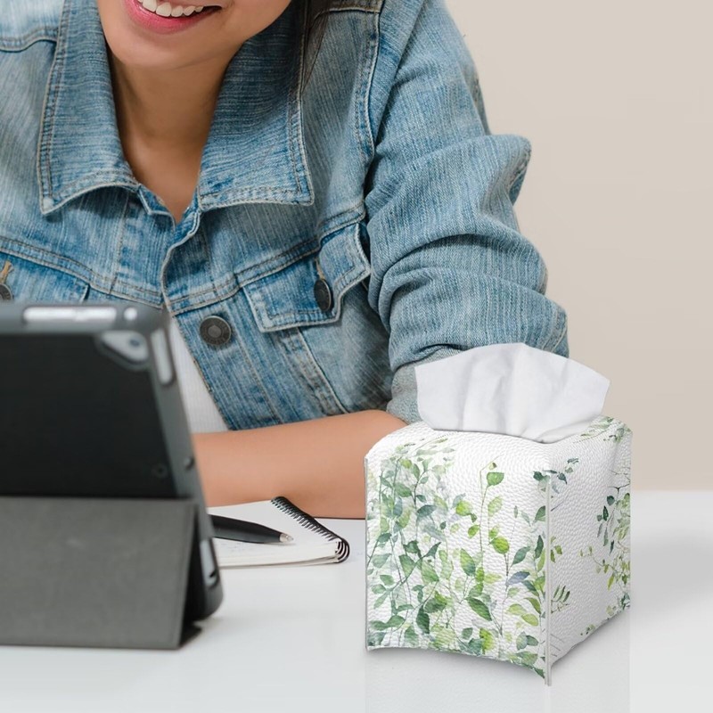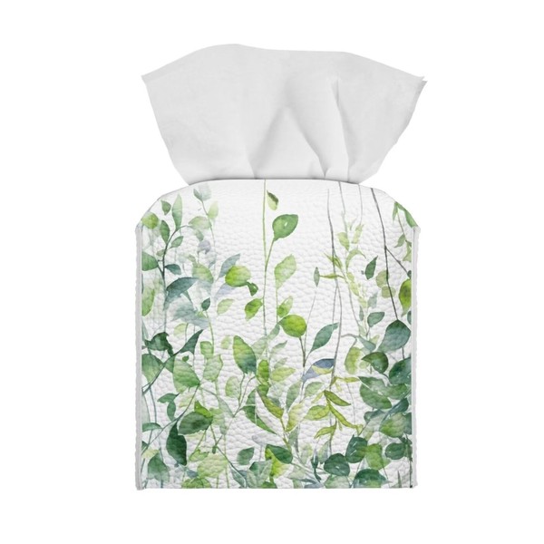 Freewander Green Leaves Tissue Box Cover Square PU Leather Facial Paper Case ...