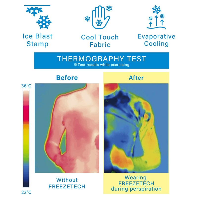 • Advanced Cooling Technology Engineered with Freeze TECH’s cooling print, this shirt instantly cools upon contact, keeping you refreshed during workouts and hot weather. The more you sweat, the cooler it gets — activated by moisture, the cooling print delivers an instant chill effect.