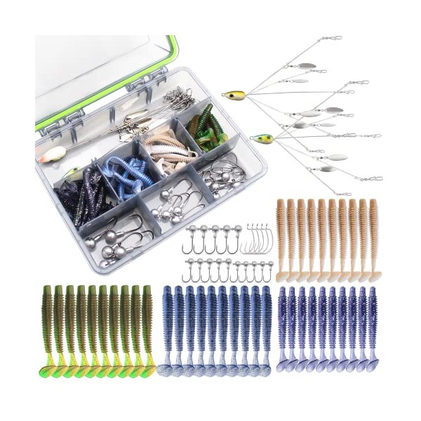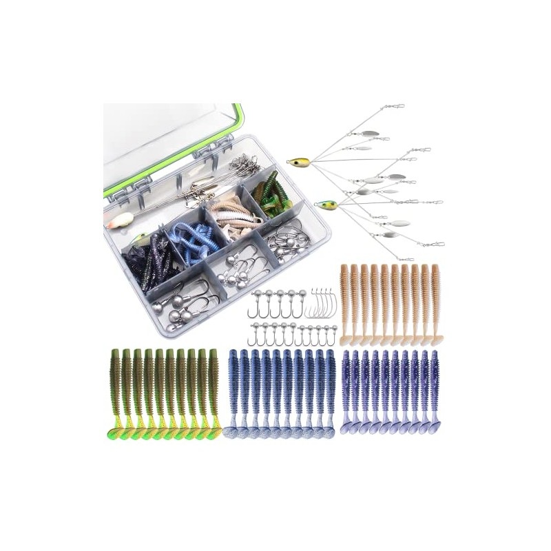 - Alabama rigs kit -2 set of Alabama fishing rig,soft plastic bait Blue: 7.5cm /10pcs,Green: 7.5cm / 10pcs,White coffee color: 6cm/10pcs,Dazzling blue: 6cm/10pcs ,head jig(7g/5pcs,10g/5pcs,14g/5pcs), #2/0 Circle Hooks 5pcs.