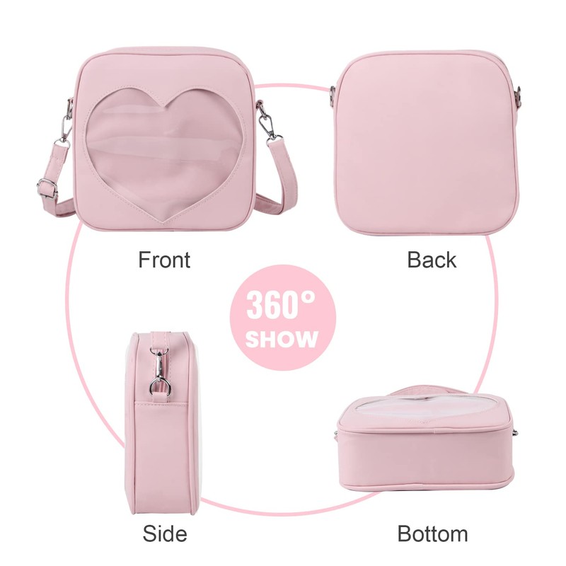 Freiesldaten Ita Bag Women's Clear Heart Crossbody Bag Lightweight Kawaii JK Uniform Display Bag