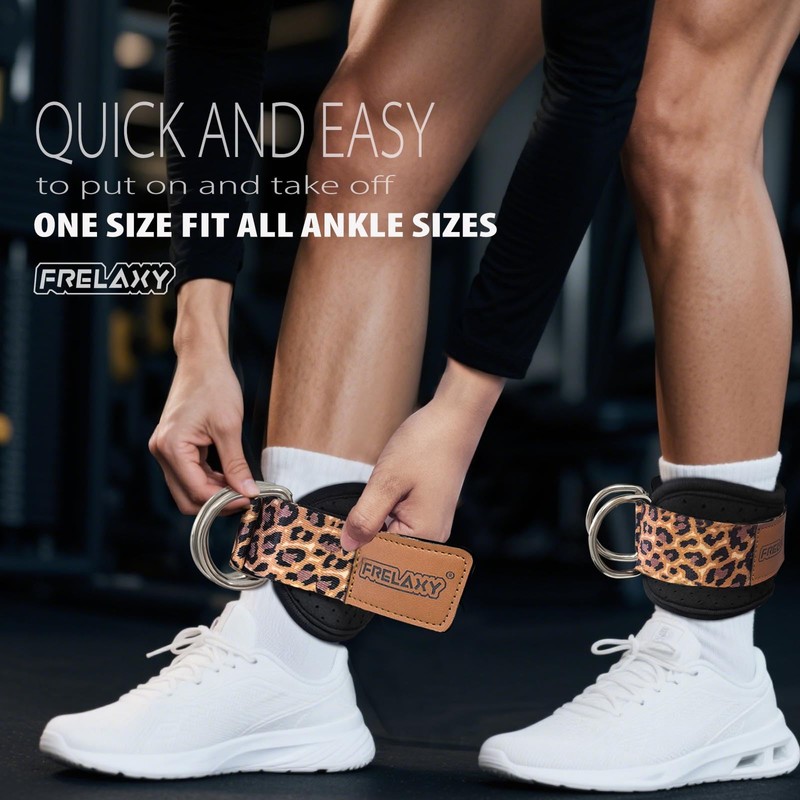 Frelaxy Ankle Strap for Cable Machine – Comfortable & Durable Leg Straps for Kickbacks, Glute Workouts, and Lower Body Exercises – Perforated Neoprene Padding & Tapered Fit (Single, Leopard)