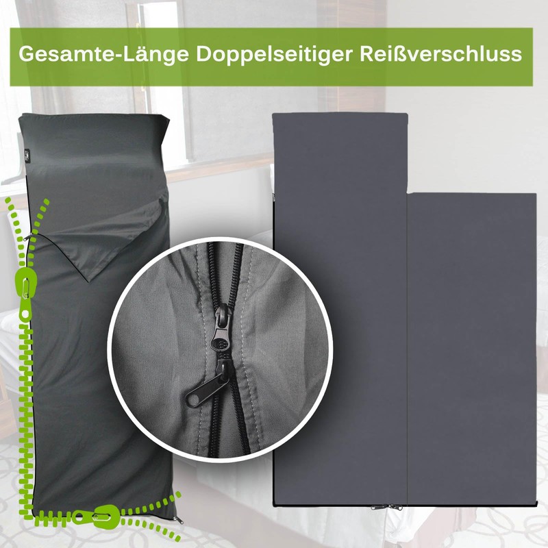 - Total length Double-sided zipper: with the 270 cm long zip, our sleeping bag can be opened and used as a blanket. Easy to get in and out, the bottom zipper can be opened to release your feet.
