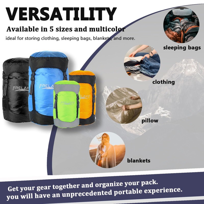- SAVE 40% MORE SPACE: Frelaxy Compression Stuff Sack is an incredibly simple and practical solution to space-saving, they will give you more space to pack what you need and give you an unprecedented portable experience.