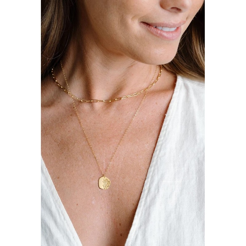 Fremttly 14k Gold Plated Oval Coin Pendant Necklace for Female - Jul-Delphinium - 17.32-19.32in Adjustable