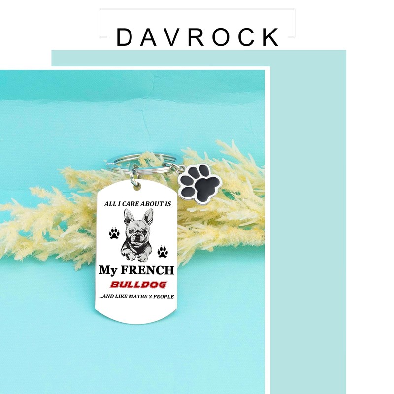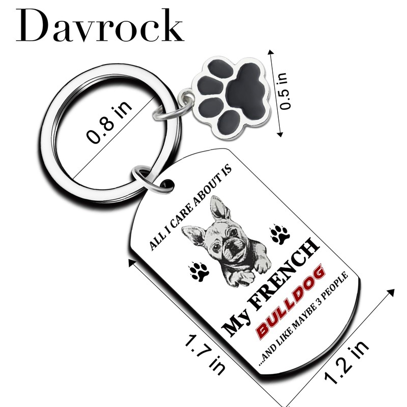 - French Bulldog Gifts for Dog Lovers/Dog Keychain/Frenchie Dog Accessories: This fun keychain features the saying “ALL I CARE ABOUT IS MY FRENCH BULLDOG...AND LIKE MAYBE 3 PEOPLE,” making it a gift for French Bulldog owners. A unique gift for anyone who loves Frenchies and has a sense of humor, including dog moms, dads, and pet owners.