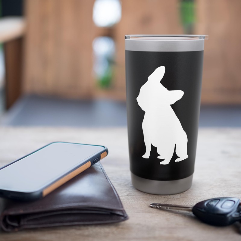 - French Bulldog silhouette pattern design.Ideal for Frenchie lovers, dog lover-themed; stylish design for everyday use with unique silhouette pattern and lightweight and portable; durable drinkware with pet-lover design trending themed accessory.