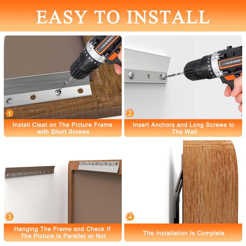 - Easy Installation: This kit includes all the accessories needed for quick and easy installation of your photo frame. Including (18) plastic anchors, (18) 1" screws, (18) 1/2" screws, and (12) clear bumpers, you'll have everything you need to start hanging in your home