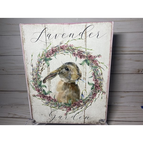 French Country Shabby Chic Spring Bunny Lavender Garden Sign - Retro Plaque Metal Iron Sign Wall Decor Art Sign for Garden Farmhouse Bathroom Home 12 x 8 Inch,de14aA62