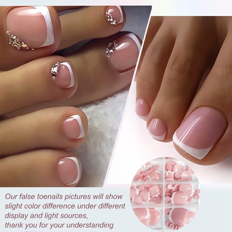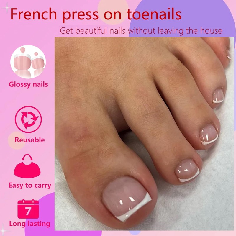 - 【WIDE APPLICATION & PERFECT GIFT】These press on toe nails are perfect for daily wear, special events and any occasion or even as a thoughtful gift. They add a touch of elegance and style to your feet, enhancing your overall appearance. Whether you're preparing for a beach vacation or a formal event, these french tip nails will ensure your feet look their best.