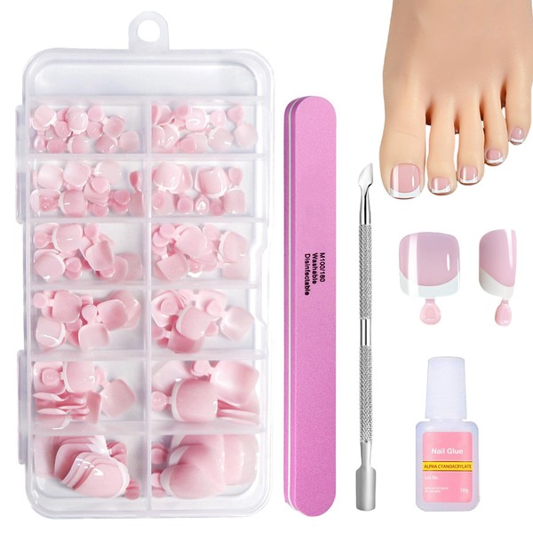 - 【HIGH QUALITY PRESS ON TOENAILS】This french acrylic fake toe nails tips are made of high quality ABS material, makes them chip-free, non-toxic, bubble-free, and super durable; Seamless fit and natural look, just like grows on you. The False Toenails are pre-numbered on the tips for easily find the suitable size.