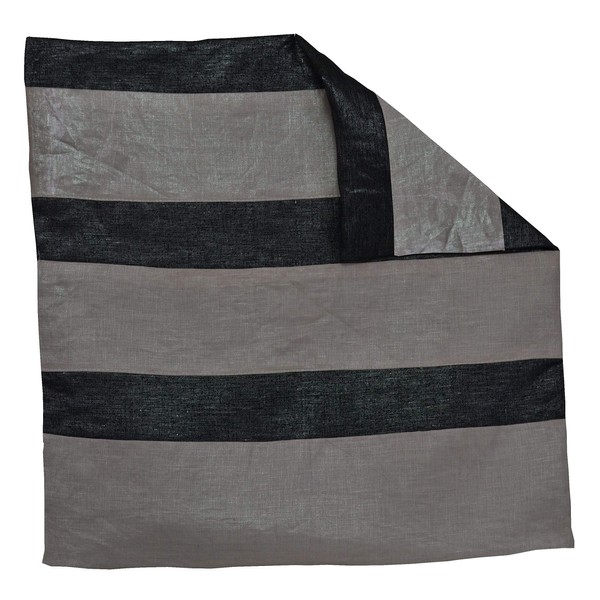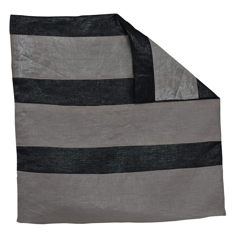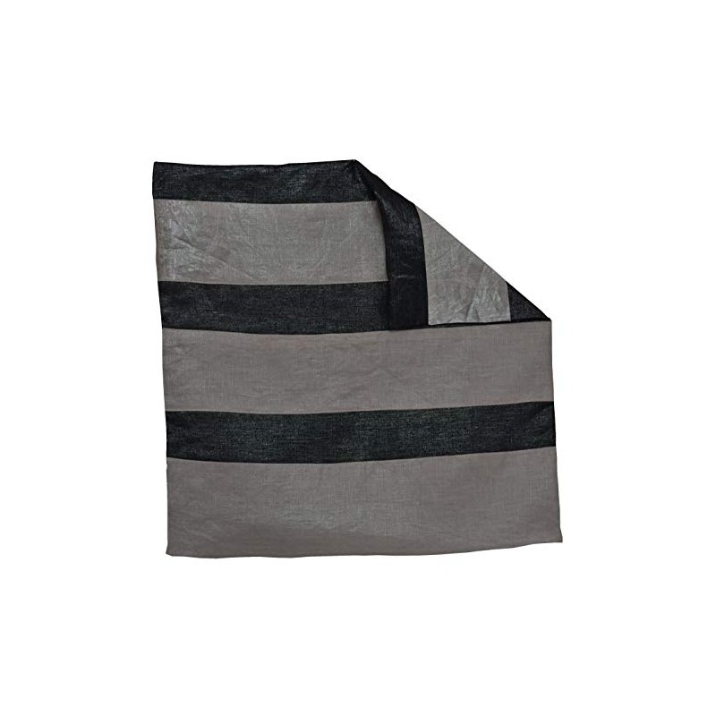 - Luxury Rugby Damask Metallic Black Horizontal Stripe Organic Soft Silver Washed Linen Pillow Cover 18 x 18 Square Pillow Cover