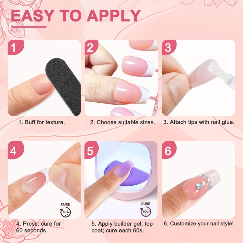 • ✨[Comfortable Soft Gel, No Irritation] - Made from the latest soak-off soft gel material, our gel x nail tips are designed for all nail types, both flat and curved. They are pre-shaped and comfortable, ensuring no irritation with a no stinging sensation. Furthermore, they're durable, bouncing back into shape after bending, without leaving marks or cracks, making our soft gel nail tips a perfect choice.