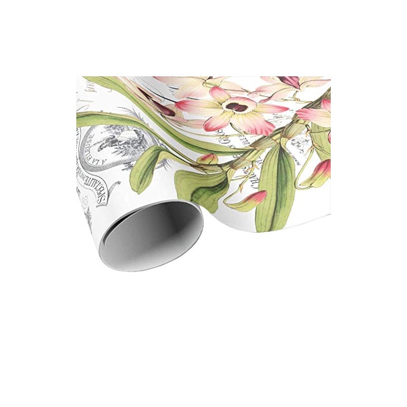 French Script and Pink Orchid Flower Wrapping Paper Gift Wrap Sheets - Pink Flower Wrapping Paper - Gift Paper - Craft Paper