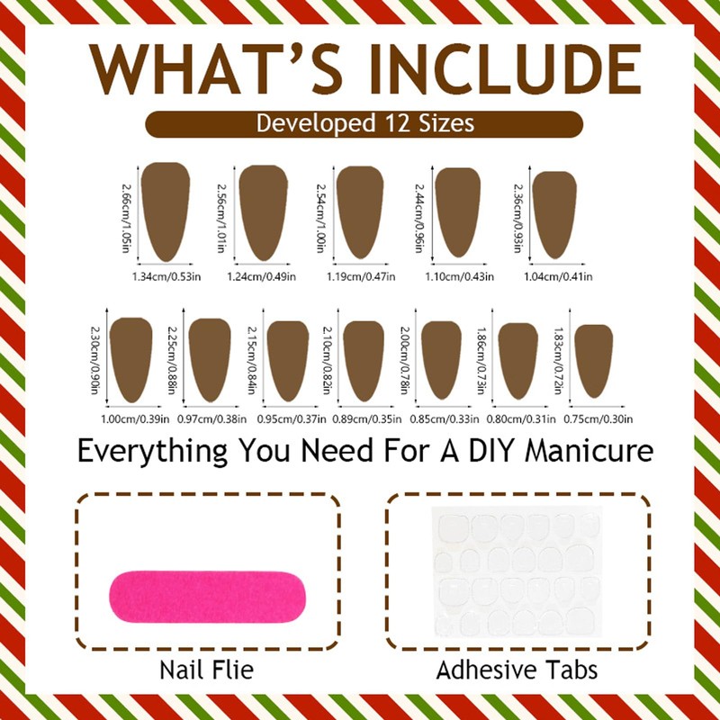 - 【All-In-One Stick On Nails Kit】: This press on nails almond kit comes with 24 pcs false nails in 12 different sizes to suit each finger, along with 1 pc nail glue for durability.