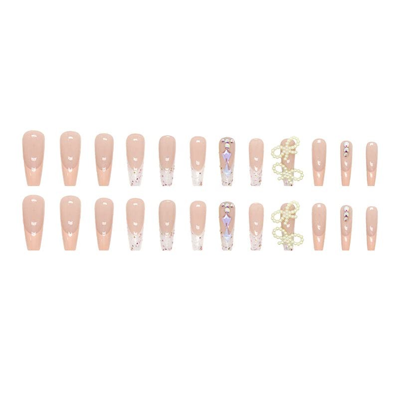 - 【Unique Design】:Nude Pink Pearl Butterfly Design, Long Square Coffin false nails coffin, combine trendy elements with classic color and shape, shiny and attractive.