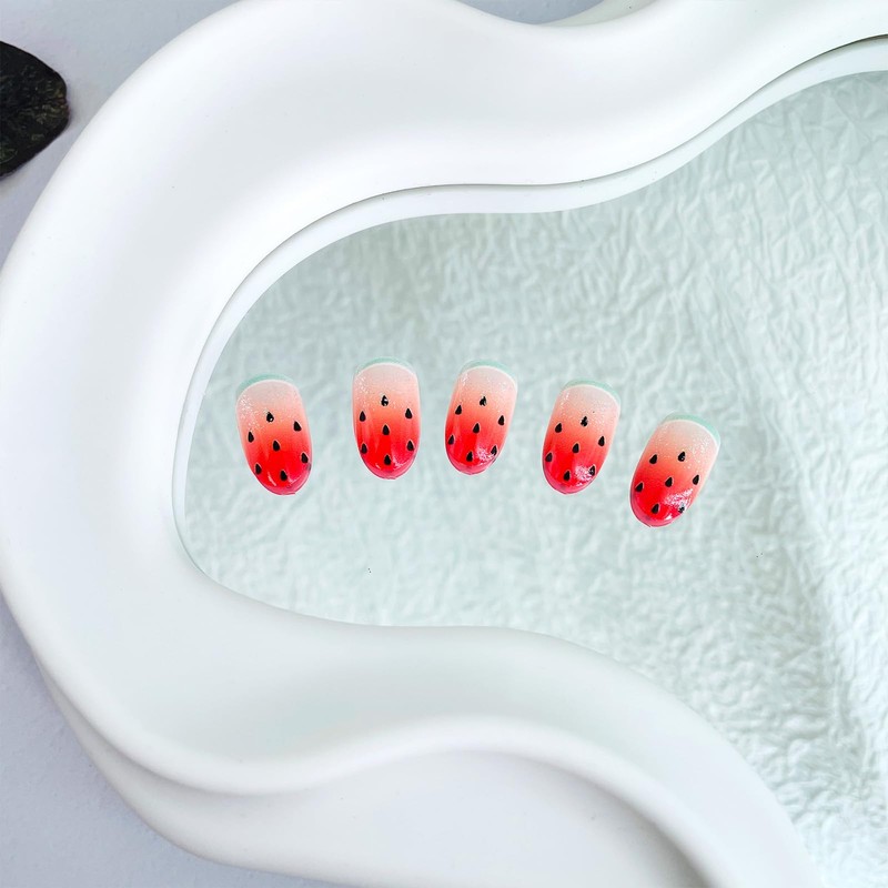 • Unique Design: Medium oval false nails are printed with watermelon patterns, creating more joyful summer atmosphere, exquisite and beautiful, achieving the nice decorative effect, which will make you more attractive and eye catching