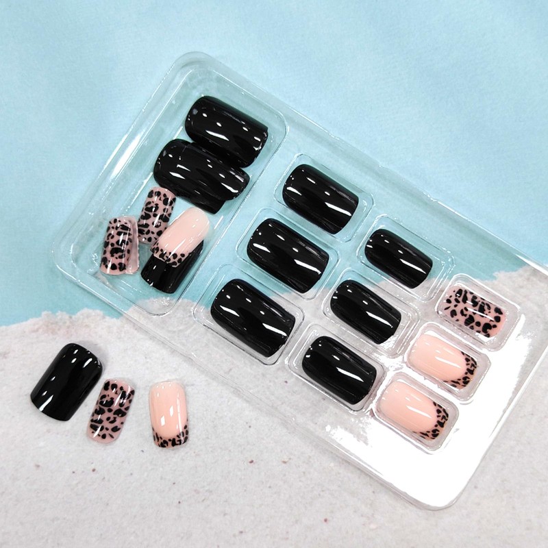 - Leopard Print Design: These french tip false nails feature bold and trendy leopard patterns, perfect for adding a fierce and fashionable touch to your look