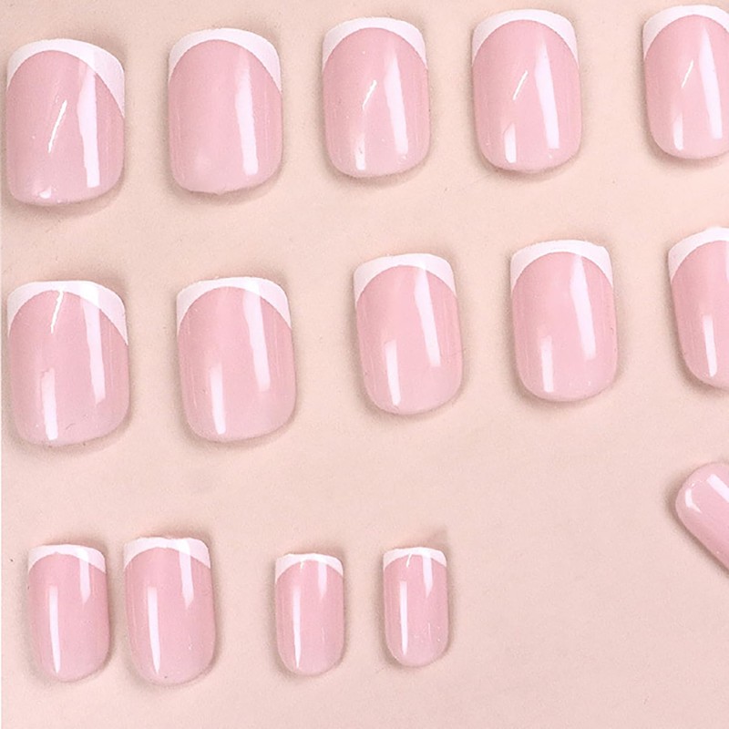 - Package Contains:You will get 24 PCS short french tip nude pink press on nails with 12 size,a nail file,24 PCS Jelly gel and a wooden stick for removing false nails tips.