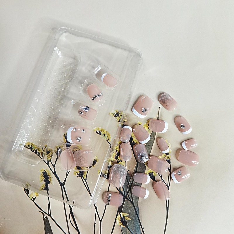 2.Choose the size that best suits your nails, taking an appropriate amount of glue or free jelly glue on the inside of the selected nail plate.