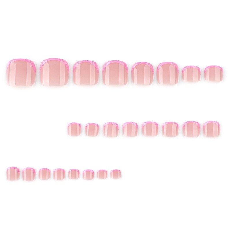 French Tip Press on Toenails Pink Full Cover Fake Toenails Short Square Summer False Toenails Glitter Toe Nails Press ons with Border Design Glossy Toenails for Women Girls 24 Pcs