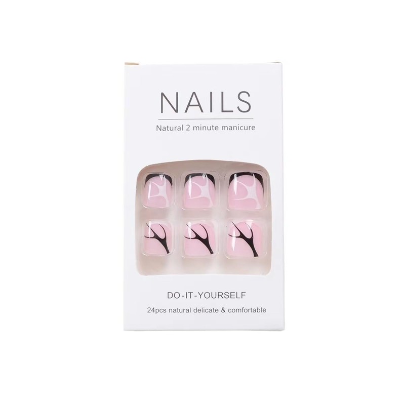 - Package Includes:Black white french stick on toenails.You will get 24 pieces of short square press on toenails in 12 size,a piece of adhesive tabs nail file and a small wooden stick,for easily matching each toe nail whatever your nail size is. Flexible and super comfortable as your own nails.