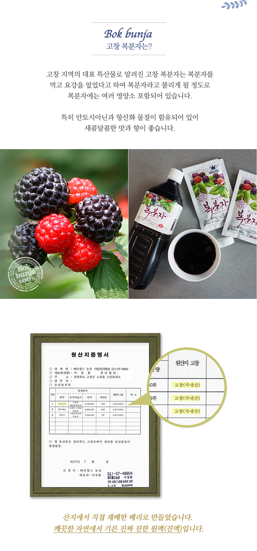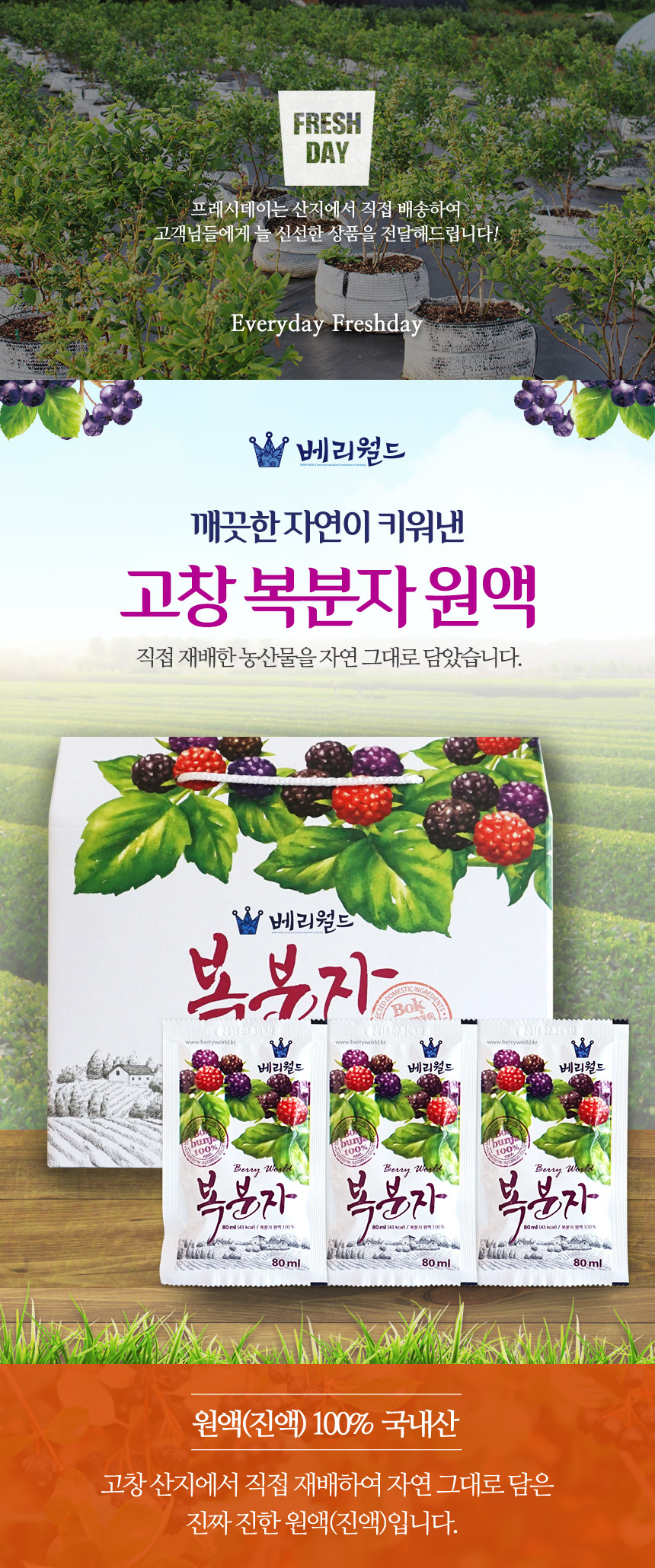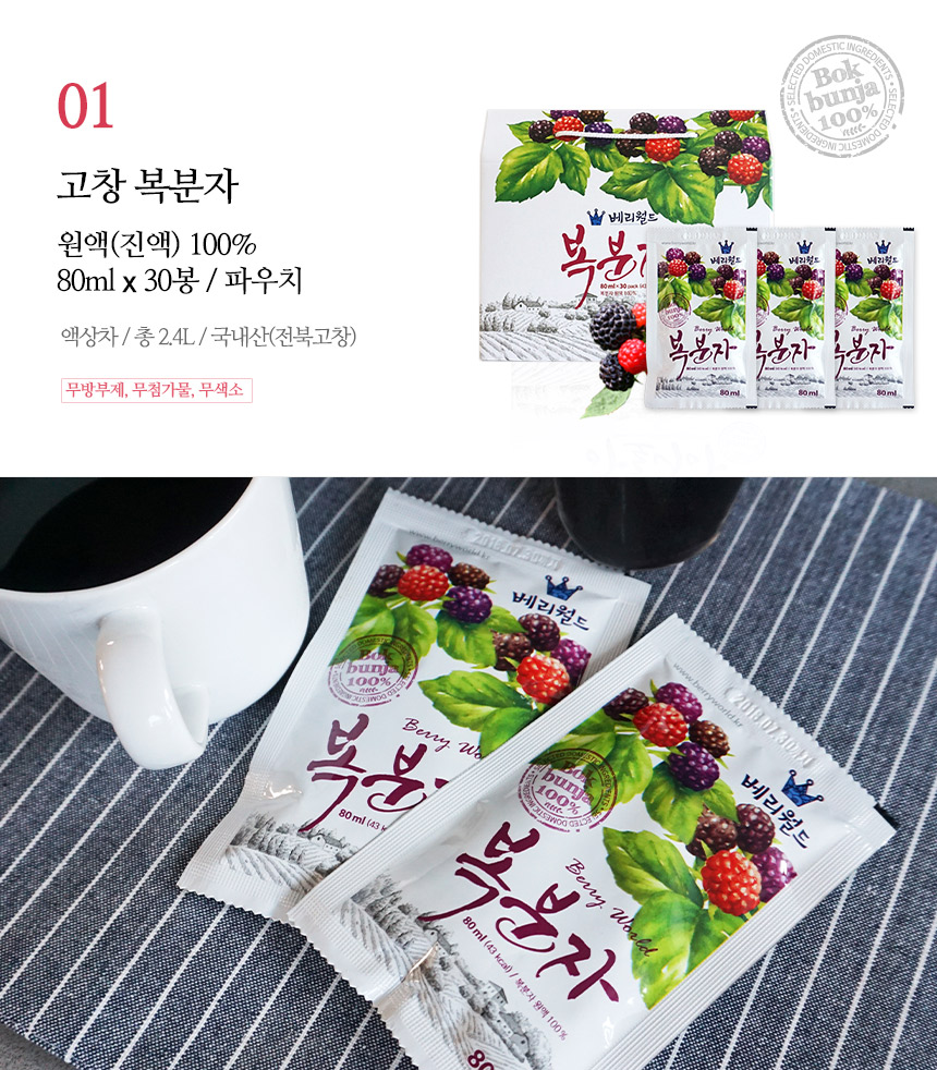 - Producer and location (producer, importer and country of origin in case of imported products): Berry World Agricultural Cooperative Corporation / 1607 Goindol-daero, Gochang-eup, Gochang-gun, Jeollabuk-do