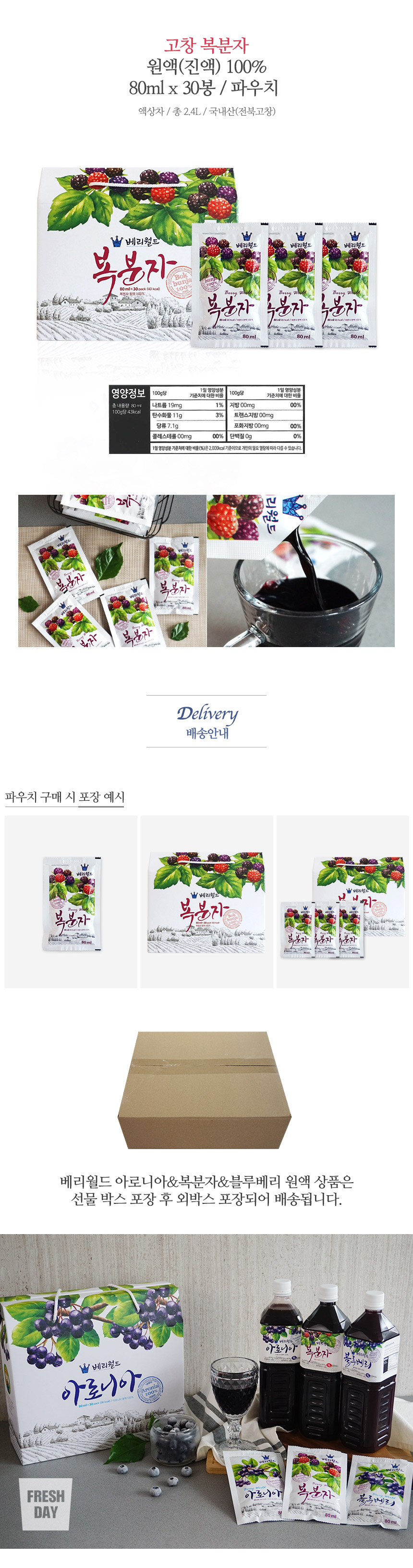 Fresh Day Gochang Berry World Bokbunja Concentrate Pouch 80mlx30 bags