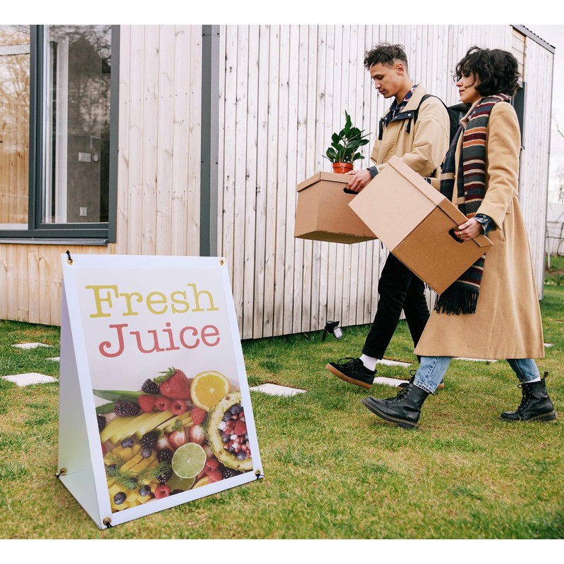 - Highlight your juice bar with this vibrant A-Frame Sidewalk Sign! Built from durable corrugated plastic, it’s weatherproof and includes Zip Ties for secure and polished display.
