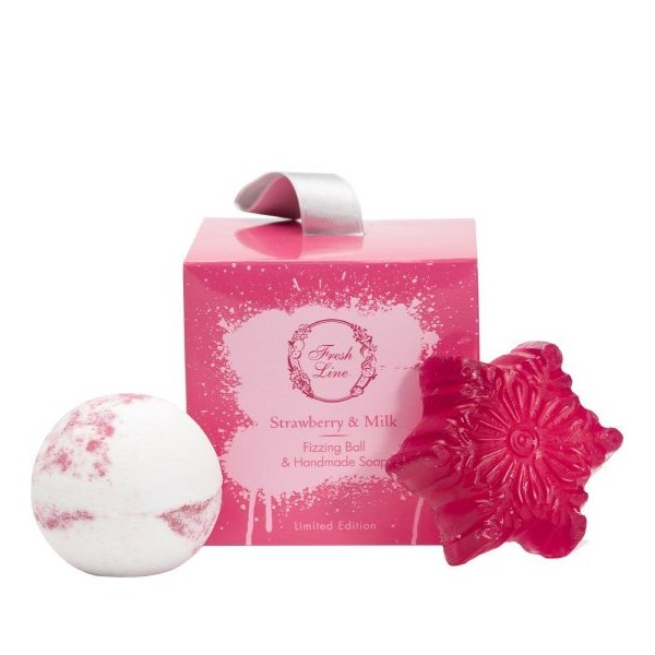 Fresh Line Xmas Set Strawberry & Milk Fizzing Ball, 120gr & Handmade Soap, 108gr