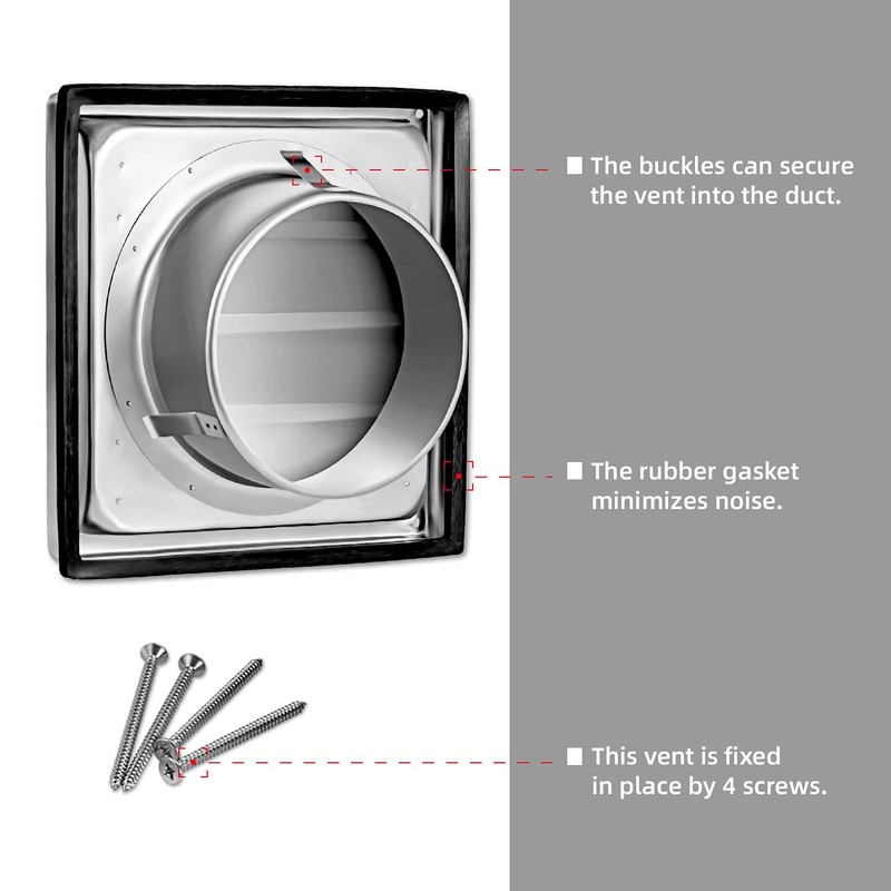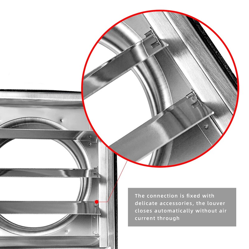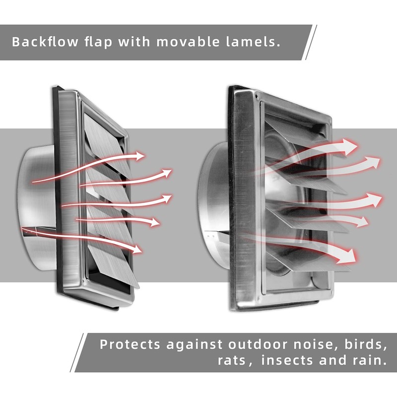 - 【GREAT FOR HOME USE】Exhaust vent cover louvered close automatically without air current through, and the air vent protects against outdoor noise, odors, birds, animals and rain.
