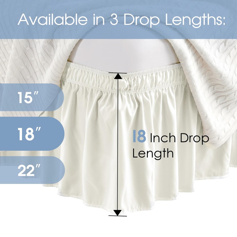 FreshCulture Queen Bed Skirt, Elastic Wrap Around Bed Skirt Queen Size, Bed Skirts for Adjustable Bed, Easy Fit with 18 Inch Drop Length, Hotel Quality Dust Ruffle for Queen Bed (Ivory)