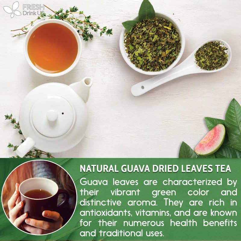 • ☘️ EASY TO MAKE A GUAVA LEAF TEA: Take 1-2 tablespoon of Guava leaves. Add the leaves with 4 cups of fresh water into a kettle. Boil the water and let the leaves simmer for about 5 mins. After simmering, let the tea steep for an additional 5mins. Strain the leaves, serve in your cup, add any sweeteners & enjoy.