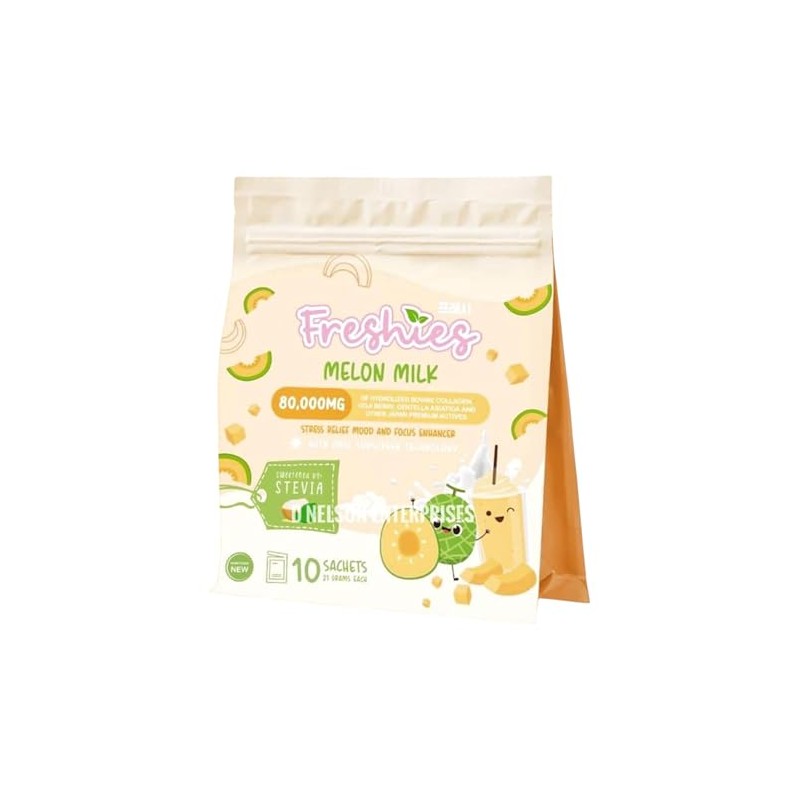 Freshies Melon Milk Collagen Drink by Juju Glow | Hydrolyzed Collagen, Goji Berry & Centella | Japan Actives | Low Calorie Nutritious Beverage | 10 Sachets