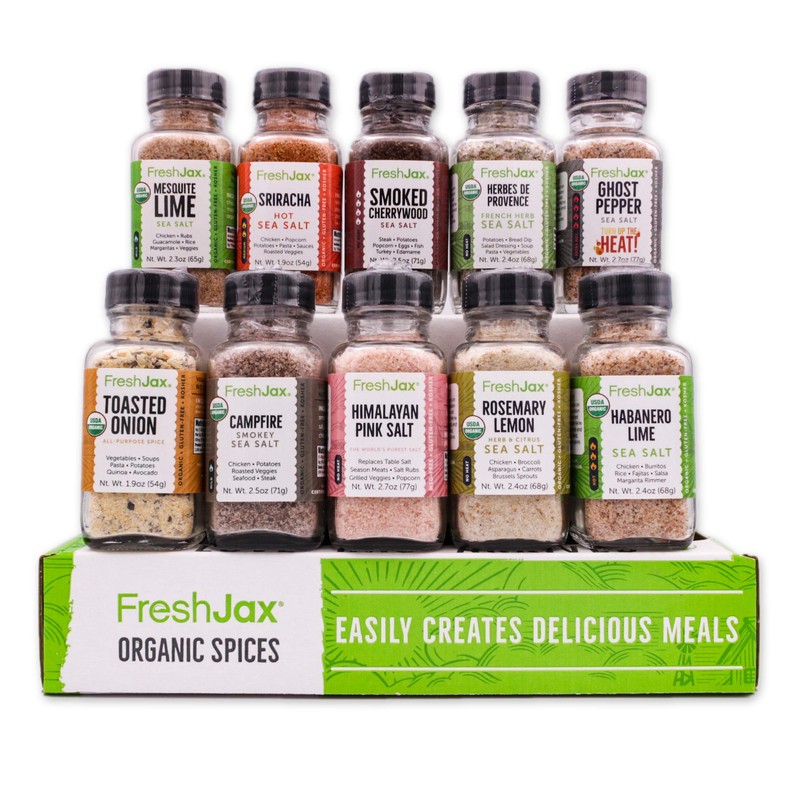 FreshJax Gourmet Salty Gift Set, Seasoned Salt Sampler (Salty 10 Spice Gift Set)