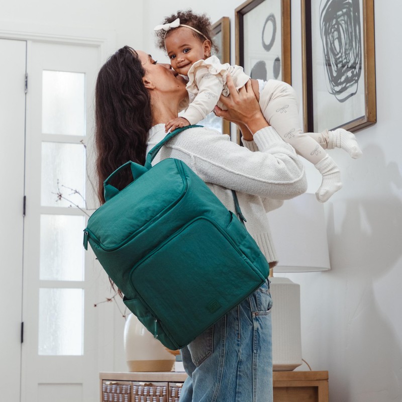 Freshly Picked Zurich Diaper Bag Backpack, Crushed Nylon, Forest Green