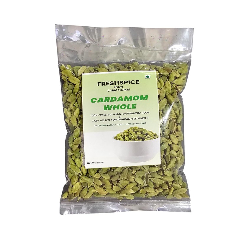 FreshSpice Green Cardamom Pods (200g) | Harvested directly from the farms of Kerala and lab tested for purity