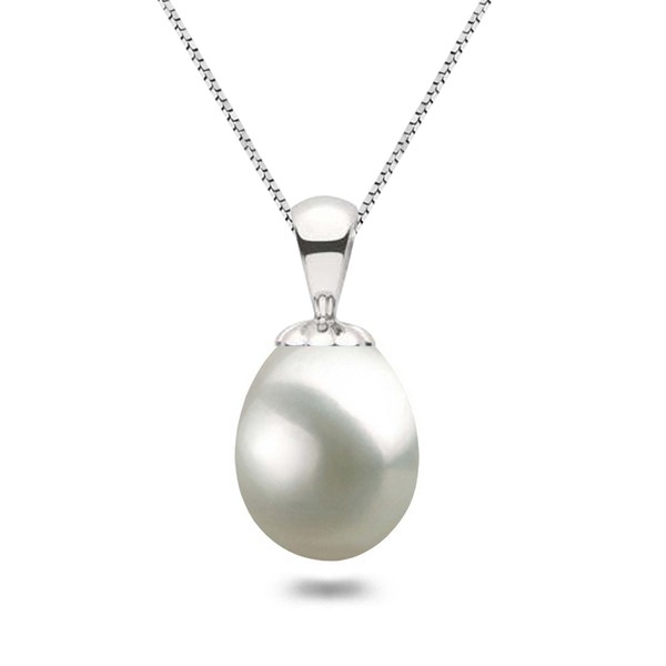 Freshwater Cultured Pearl Pendant Necklace AAA Graded White Teardrop Necklace Pendant with Sterling Silver Setting and Matching 16 or 18 Inch Chain - Orien Jewelry