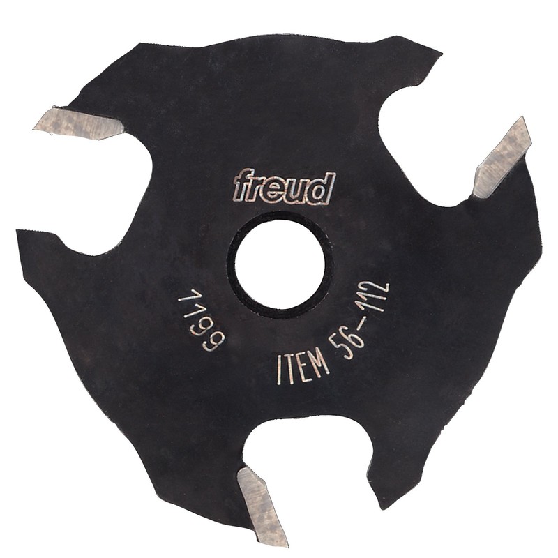 Should be used with Freud's slotting cutter arbors 60-100 for 1/4" shanks and 60-102 for 1/2" shanks. 2" Overall Dia (D), 1/4" Carbide Height (h), 9/16" Max Cut Depth (C), 3 Flutes. Application: Producing slots and grooves for T-moldings, spline joints, tongue & groove joints and many other applications. Made In Italy.