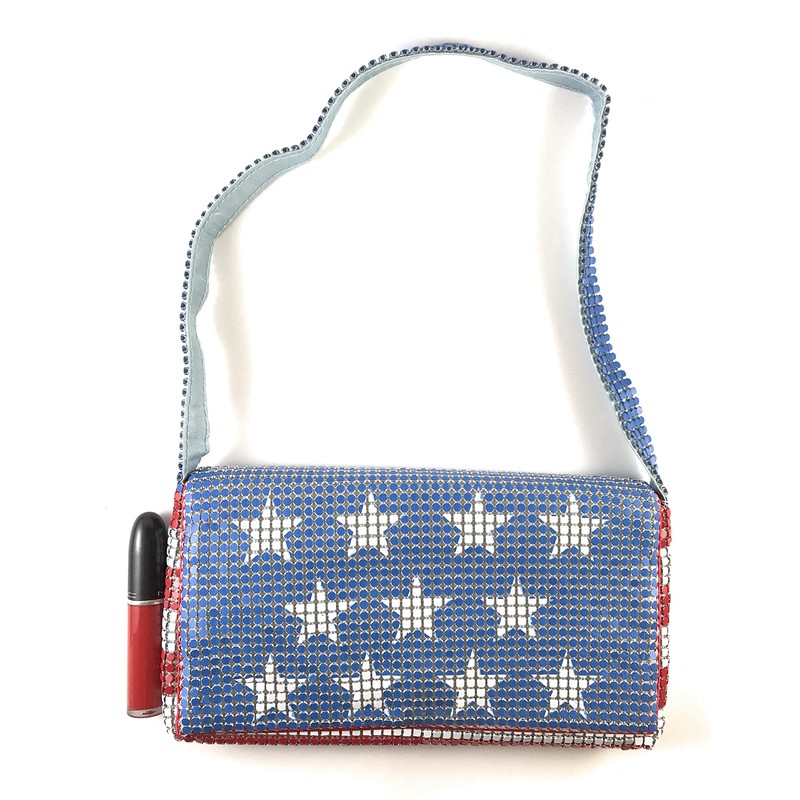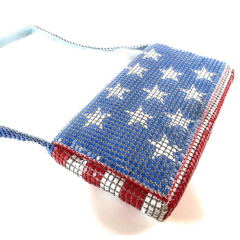 - This is an amazing unique designed Metal Mesh American Flag Purse.