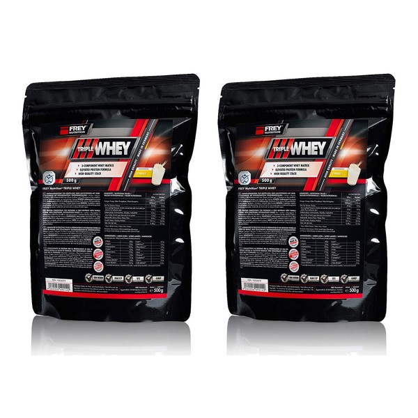 Frey Nutrition Triple Whey 2 x 500 g Bags Neutral - Whey Protein (without Sweeteners, No Flavours, No Dyes) High BCAA Content - 100% Solubility, Made in Germany