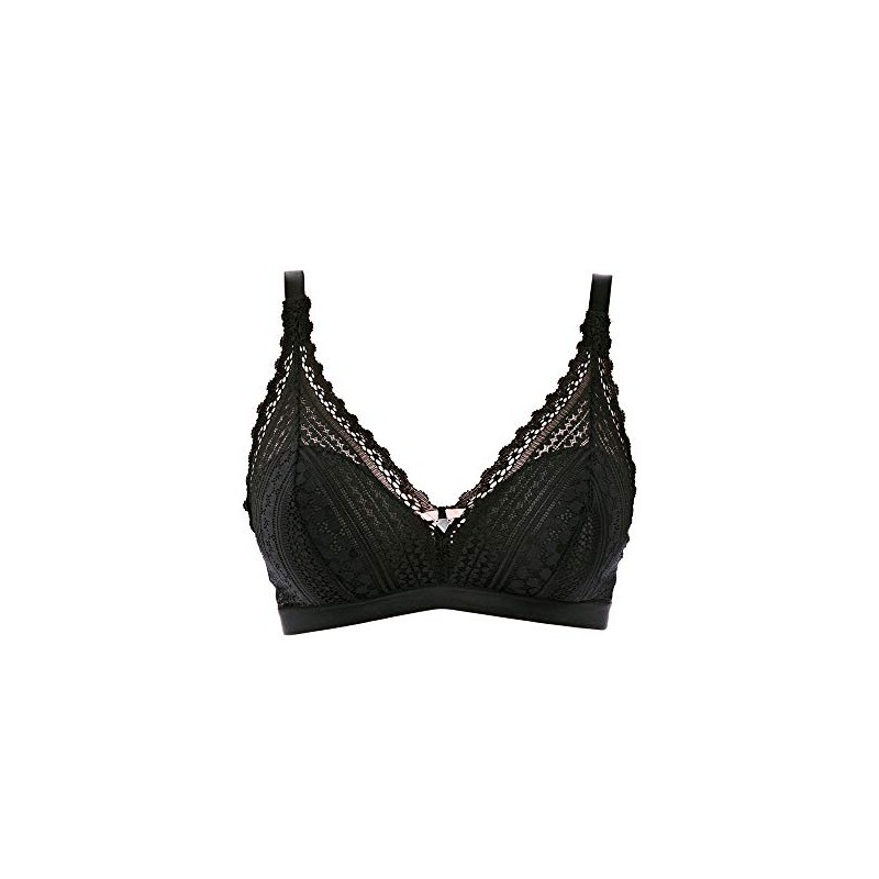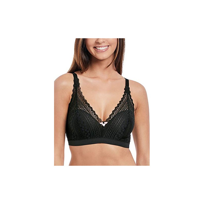 Freya womens Daisy Lace Wireless Bralette Plunge Bra, Noir, Large US